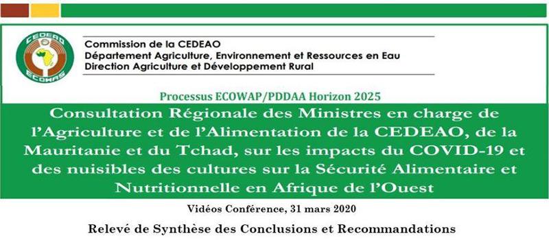 Conclusions de la Vidéo-Conférence du 31 mars des Ministres de l’Agriculture & Alimentation de la CEDEAO, Mauritanie et du Tchad sur les impacts du COVID19 & des nuisibles des cultures sur la Sécurité Alimentaire & Nutritionnelle en Afrique de l’Ouest