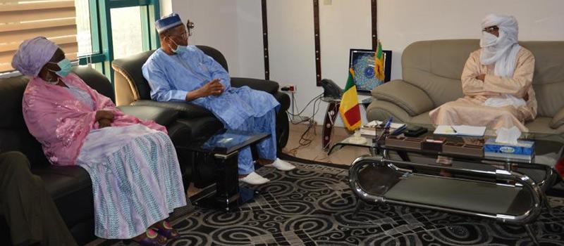 Les autorités rencontrées sont Messieurs(i) Redouwane Ag Mohamed Ali, Ministre Commissaire à la sécurité alimentaire, (ii) Mahmoud Ould Mohamed, Ministre de l’agriculture, de l’élevage et de la Pêche, (iii) Alhamdou Ag Ilène, Ministre des Maliens de l’extérieur et de l’intégration africaine et (iv) Madame Bintou Samake, Ministre de la promotion de la femme, de l’enfant et de la famille.