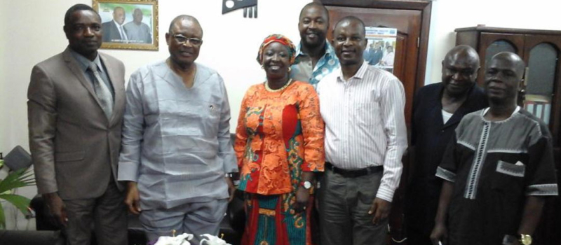 En marge de l’atelier régional de formation des experts nationaux des Ministères en charge de l’agriculture des Etats anglophones de la CEDEAO sur la formulation et la budgétisation des projets d’investissement agricole, l’équipe de la Direction de l’Agriculture et du Développement Rural et celle de l’Agence Régionale pour l’Agriculture et l’Alimentation (ARAA) ont rencontré le Ministre de l’agriculture, de la foresterie et de la sécurité alimentaire de la Sierra Léone, le Professeur Monty P. Jones, pour discuter de questions diverses. C’était le 31 mars 2017.
