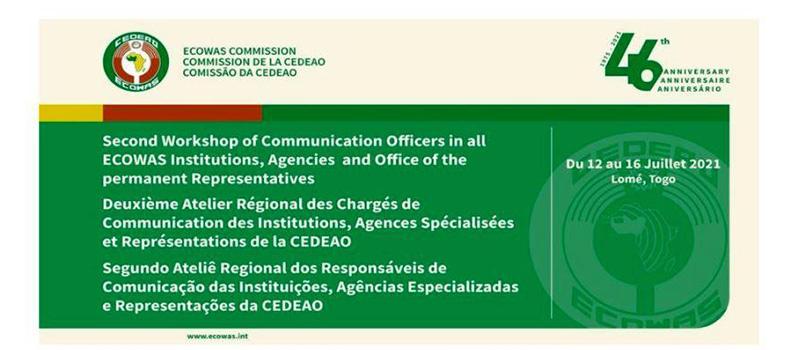 Les Experts et chargés de Communication des Institutions et Agences spécialisées de la CEDEAO seront en atelier du 12 au 16 juillet 2021 à Lomé dans la capitale togolaise, plus précisément dans la salle de Conférence de l’Agence Régionale pour l’Alimentation et l’Agriculture (ARAA).